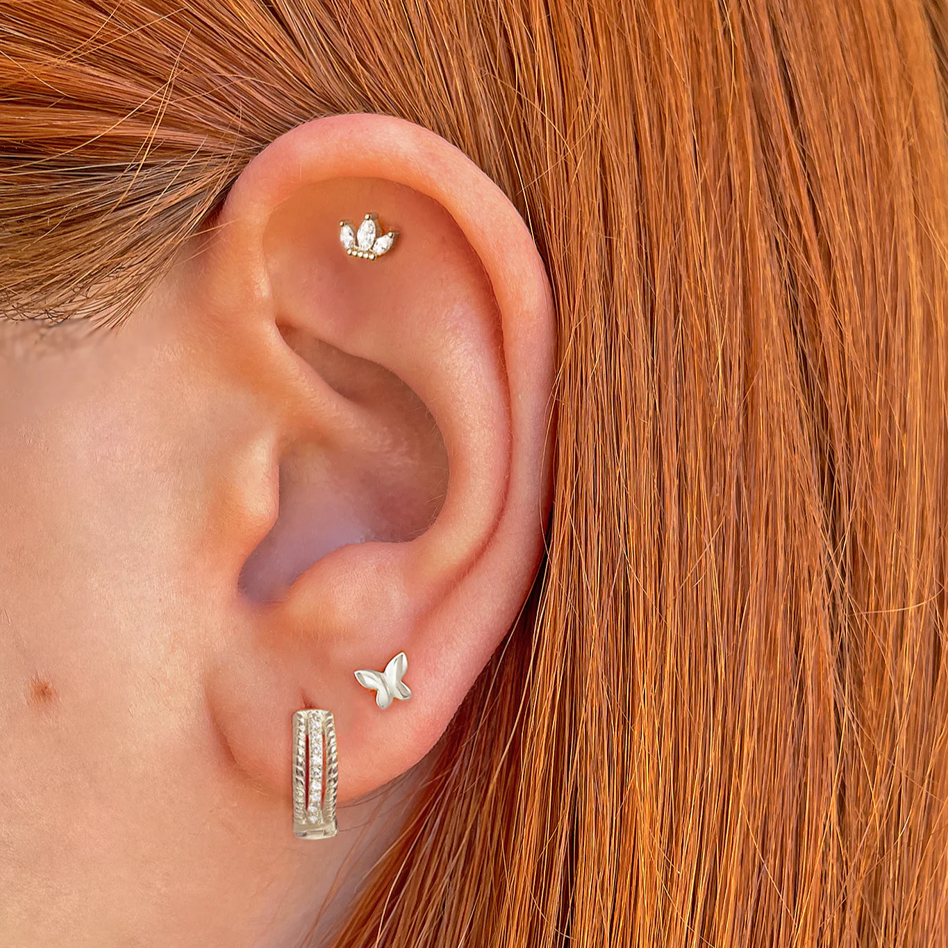 Mini pendiente con cierre de bola. Tienen un precioso diseño de mariposa. Es perfecto para combinar. Muy cómodo de llevar gracias a su cierre.
